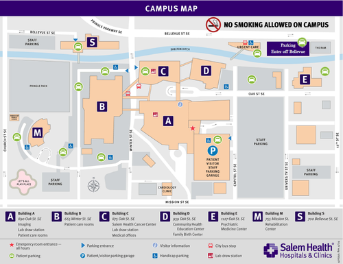 Salem Health Hospital Parking info (see below for a link to a parking map):